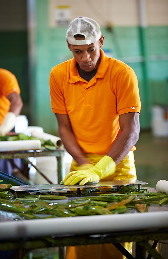 От засаждането и отглеждането на растенията, до прибирането на реколтата, ние се грижим за своето алое вера с вниманието и високите изисквания, които влагаме и във всеки един от продуктите си. Фермерите ни берат листата на ръка прецизно и деликатно. След това те се обработват в рамките на едва няколко часа, за да получите най-чистия и свеж гел от алое вера, запазил всички свои естествени полезни качества. В плантациите наемаме местни фермери и осигуряваме отлични условия за работа, както и стабилни доходи за общността в региона.