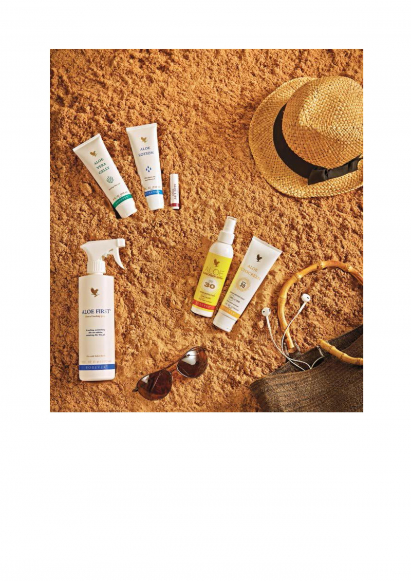 5. Алое сънскрийн спрей (код: 319) и лосион (код: 199) На плажа е жизненоважно да сте защитени от ултравиолетовите лъчи с водоустойчив продукт с достатъчно висок предпазен фактор. Вие изберете дали да се намажете с лосиона или да се напръскате със спрея на Форевър – и двата слънцезащитни продукта са с копринена консистенция,бързо попиват в кожата и я хидратират със стабилизиран гел от алое. И двата ви пазят както от UVA, така и от UVB лъчите с фактор 30.