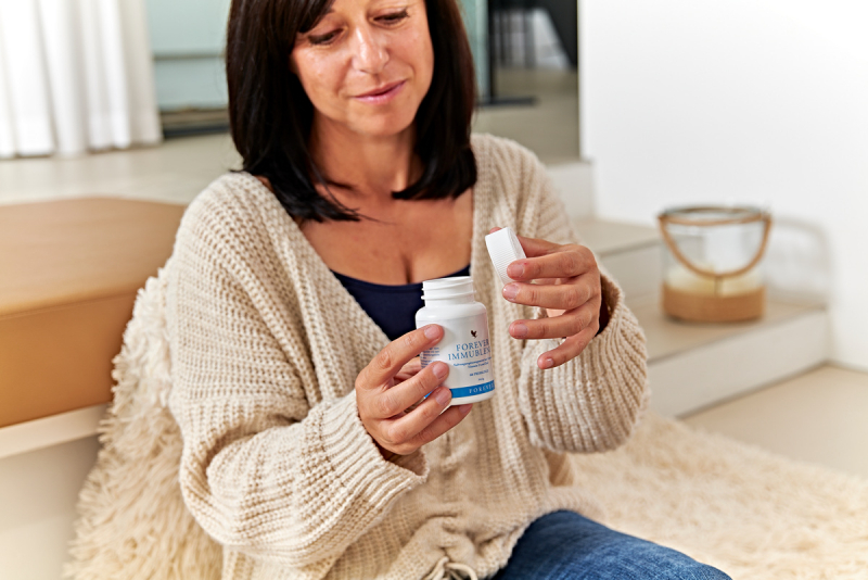 Изключително важно е да ядем редовно и то питателна храна, но тя може да не осигури всички препоръчителни всекидневни витамини и минерали, от които тялото ви се нуждае. Освен това немалко от хранителните добавки на Форевър съдържат специално разработени от нас комбинации от нутриенти, растения или билкови екстракти, които трудно се набавят само от храната. Например през зимните месеци всеки трябва да приема добавка с витамин D, защото излагането ни на слънце е ограничено, а пък осигуряването на нужните количества само от храната може да се окаже трудно. Препоръчителната дневна доза Форевър имубленд съдържа 10 mcg витамин D плюс мощна комбинация от натурални растения и доказани съставки.
