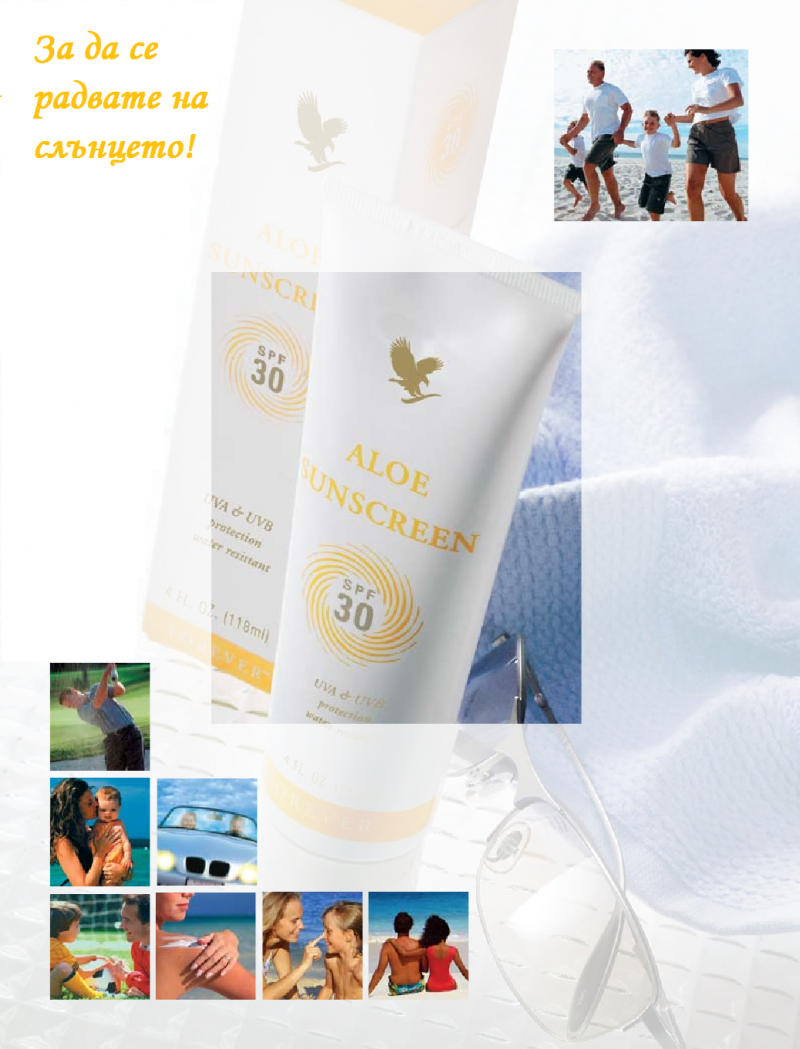 - Използвайте фантастичните слънцезащитни продукти на Форевър с фактор 30.