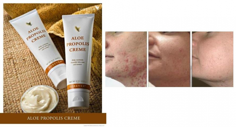 Благодатната формула е завършена с витамините А и Е, признати заради естественото си успокоително действие върху кожата. Aloe Propolis Creme много добре овлажнява сухата кожа. Приятният му аромат и богата консистенция го правят идеален за масаж. Употребява се при локални раздразнения като ухапвания, леки изгаряния или при по-сериозни проблеми като екзема и псориазис.