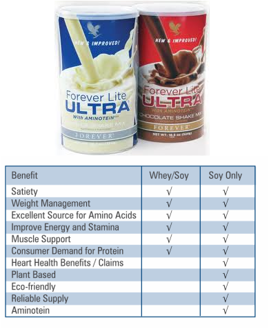 Шейковете Форевър лайт ултра са се доказали като отличен заместител на едно или две хранения през деня за онези от вас, които имат нужда от подкрепа при понижаване на калорийния прием, без да ощетяват тялото си откъм хранителни вещества. А и те са много вкусен и удобен начин да приемаме всички необходими витамини и минерали с една питателна, сладка и възхитителна напитка. Соята не просто предлага пълноценен протеин, но го прави и под форма, която не съдържа нито лактоза, нито млечни и животински продукти. Чудесно, нали?