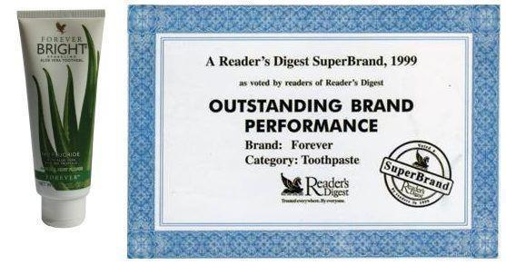 Гелът за зъби с алое Форевър брайт (код: 028) е един от 20-е най-продавани продукта на компанията вече дълги години. Това никак не е чудно, като се имат предвид чудесните резултати от употребата му, с които могат да се похвалят мнозина. Гелът за зъби изпълнява функциите на традиционна паста, като елиминира патогенната микрофлора (болестотворни бактерии) в устата. Редовното миене на зъбите с Форевър брайт осигурява естествена