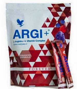 Форевър Ливинг Продъктс създаде оптимален и пълноценен източник на L-аргинин и го нарече АРГИ+. Тази хранителна добавка съдържа 5 грама L-аргинин в една доза, а плюсът в името на продукта е и онова, което го отличава сериозно от конкурентите му на пазара. Неповторимата формула съдържа още два ключови елемента, които осигуряват на организма хранителните вещества, необходими му за най-пълноценно усвояване на аминокиселината и преобразуването й в азотен оксид. Единият е уникален катализиращ и енергизиращ комплекс от витамини С, D3, В6, В12, фолат, както и набиращият все по-голяма популярност специален витамин К2, известен още като менахинон.